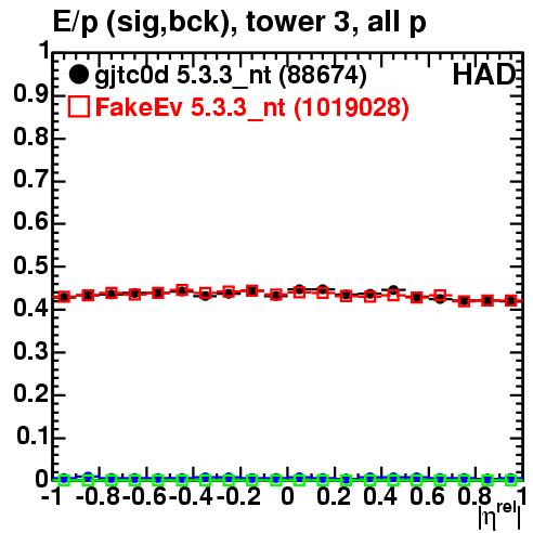 | E/p vs. relative eta (target tower) | tower 3 | track momentum bin ≥ 2 GeV/c | ||||||
