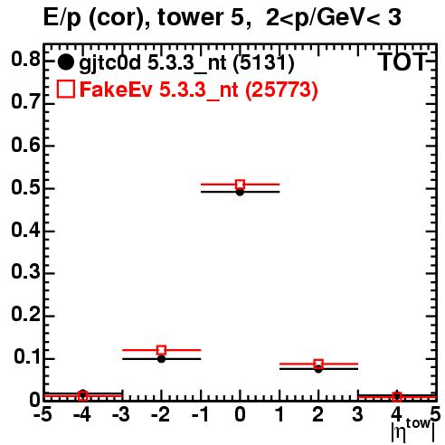 | E/p vs. relative tower eta | tower 5 | track momentum bin 2-3 GeV/c | ||||||