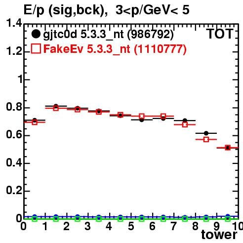 | E/p vs. itow | track momentum bin 3-5 GeV/c | ||||||
