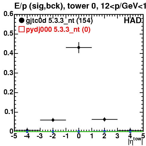 | E/p vs. relative tower eta | tower 0 | track momentum bin 12-16 GeV/c | ||||||