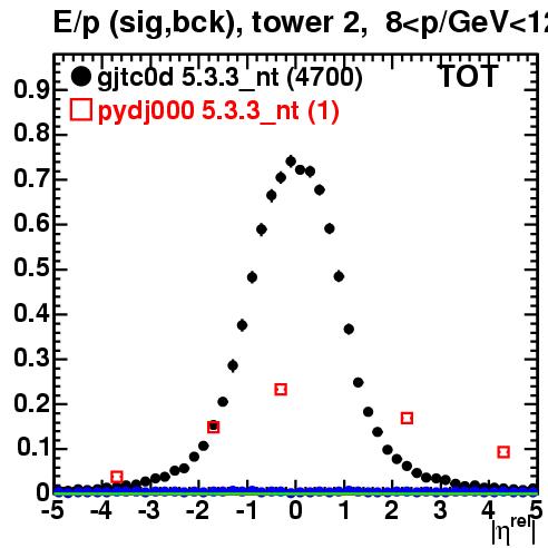 | E/p vs. relative eta | tower 2 | track momentum bin 8-12 GeV/c | ||||||
