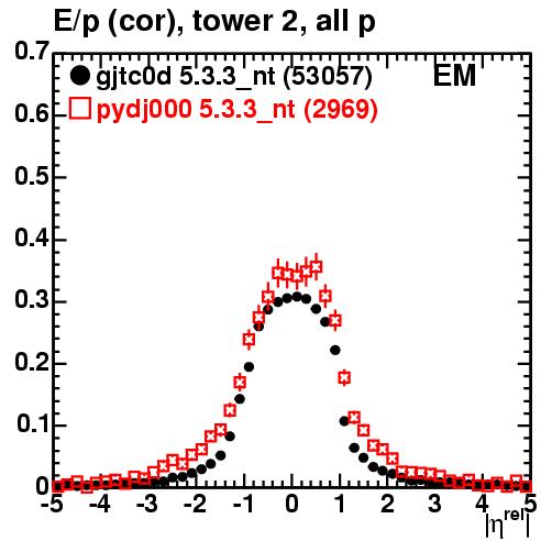 | E/p vs. relative eta | tower 2 | track momentum bin all GeV/c | ||||||