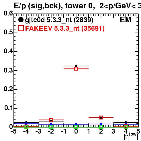 | E/p vs. relative tower eta | tower 0 | track momentum bin 2-3 GeV/c | ||||||