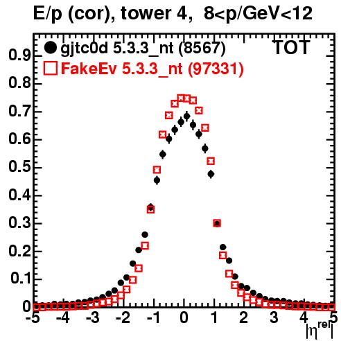 | E/p vs. relative eta | tower 4 | track momentum bin 8-12 GeV/c | ||||||
