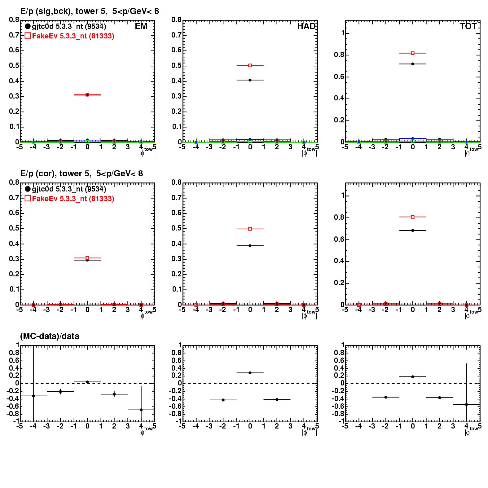 | E/p vs. relative tower phi | tower 5 | track momentum bin 5-8 GeV/c | ||||||