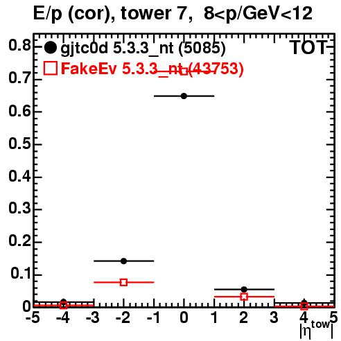 | E/p vs. relative tower eta | tower 7 | track momentum bin 8-12 GeV/c | ||||||