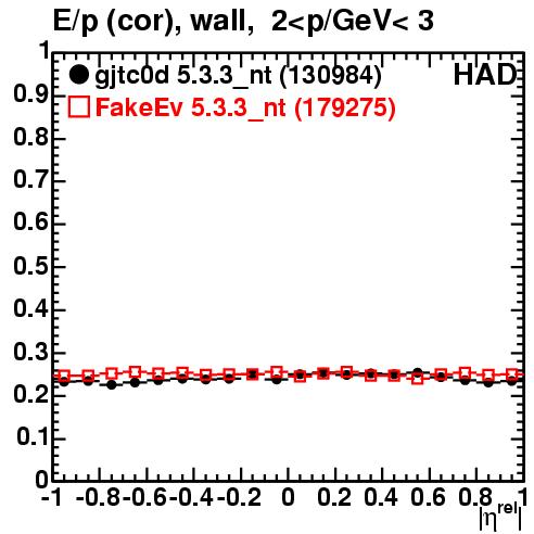 | E/p vs. relative eta (target tower) | wall (tower 6-9) | track momentum bin 2-3 GeV/c | ||||||