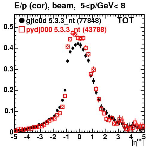 | E/p vs. relative eta | beam (tower 17-20) | track momentum bin 5-8 GeV/c | ||||||