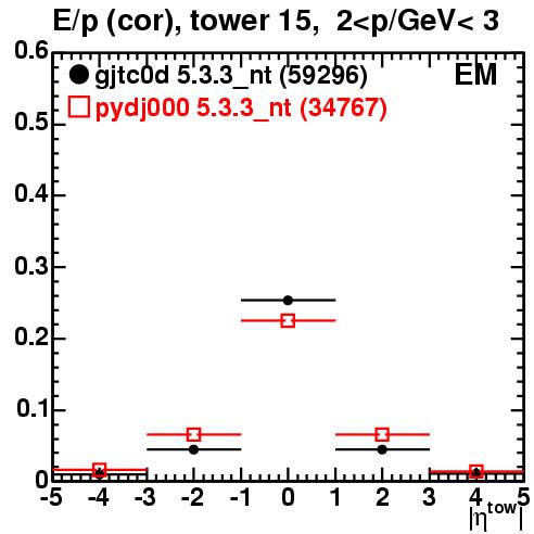 | E/p vs. relative tower eta | tower 15 | track momentum bin 2-3 GeV/c | ||||||