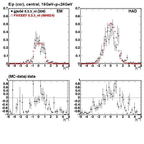 | E/p signal vs. relative eta (target tower), corrected: | |||||