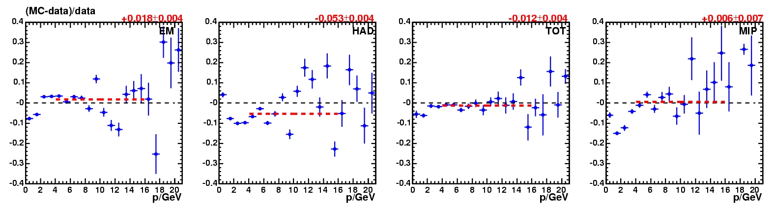 FAKE_EV vs. gmbs0d+gjtc0d (weighted average), Gaussian means for TOT and MIP for p>10GeV